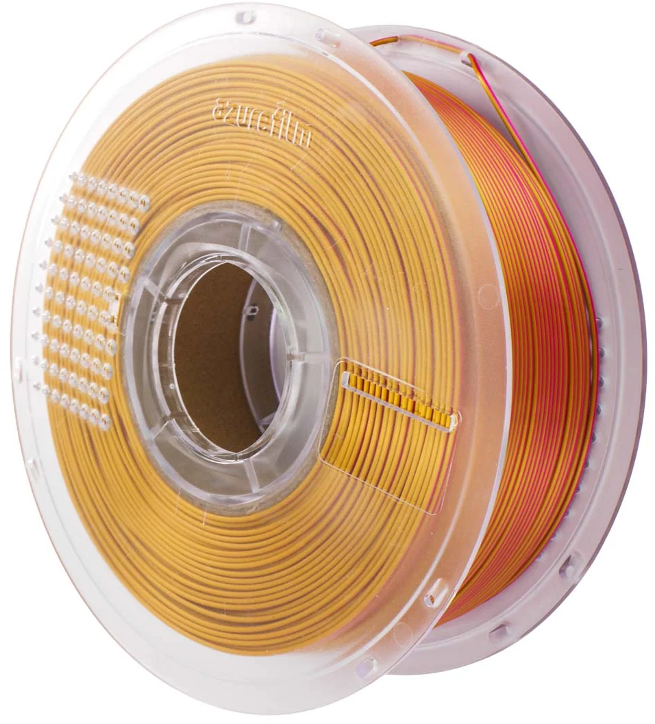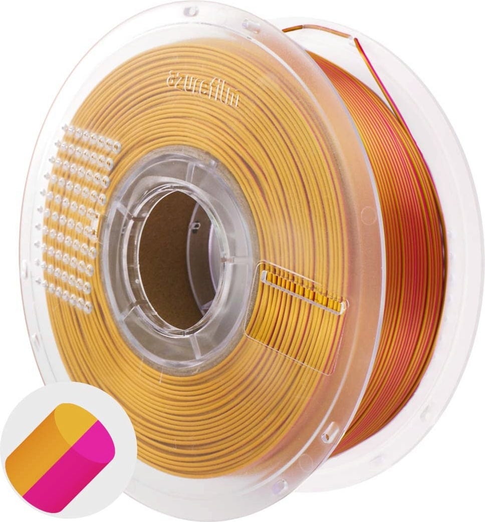 AzureFilm PLA Silk Multicolor adds not just colour but a touch of elegance to your prints. This filament combines the hassle-free handling of PLA with a silky, glossy finish that gives every object a premium look. Thanks to its special formulation, layer lines are beautifully concealed, giving your models a seamless, polished appearance.