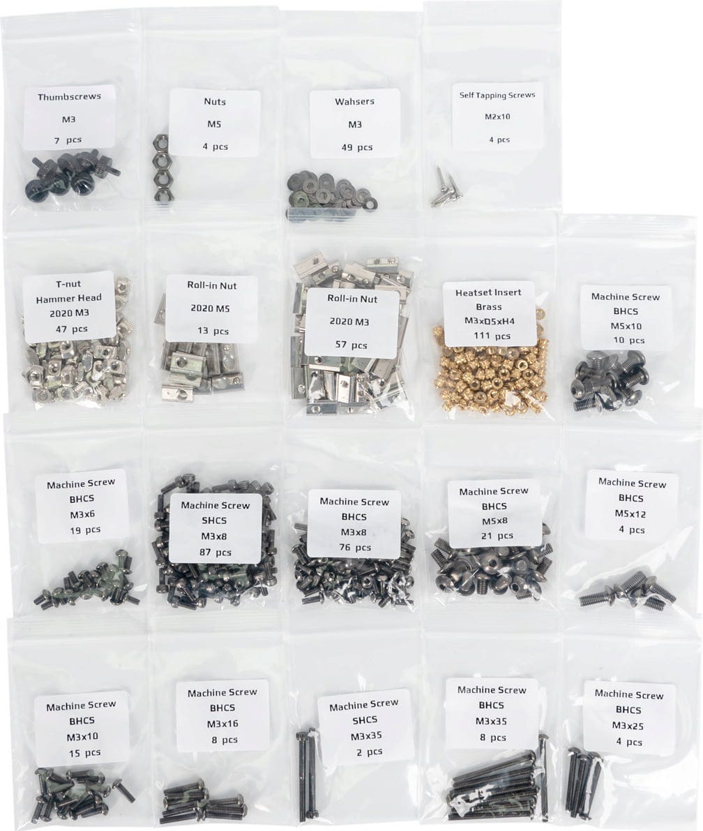 - Voron-inspired design: 2020 aluminium frame with concealed joints, acrylic panels and numerous 3D-printed components,