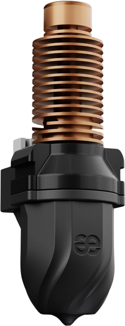 The hotend is made of wear-resistant, durable materials and is equipped with a replaceable EndCoat™ nozzle for industrial components subject to heavy wear. The precision-applied coating increases surface hardness and improves abrasion resistance in critical areas such as nozzle tips and heatbreak necks. Compared to a hardened steel nozzle, this nozzle has a service life that is up to 2.5 times longer.