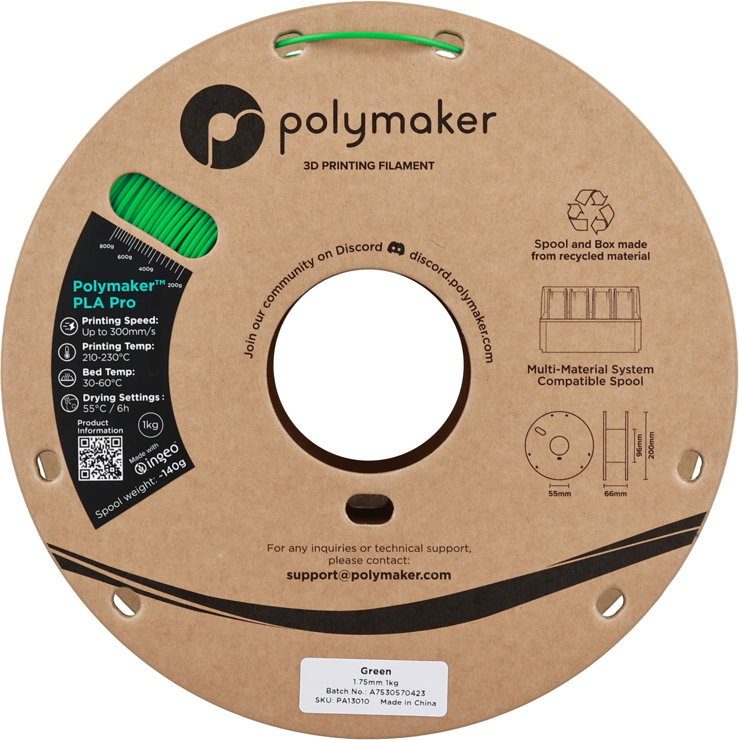 Polymaker PLA Pro Green, 1.75 mm / 1000 g
