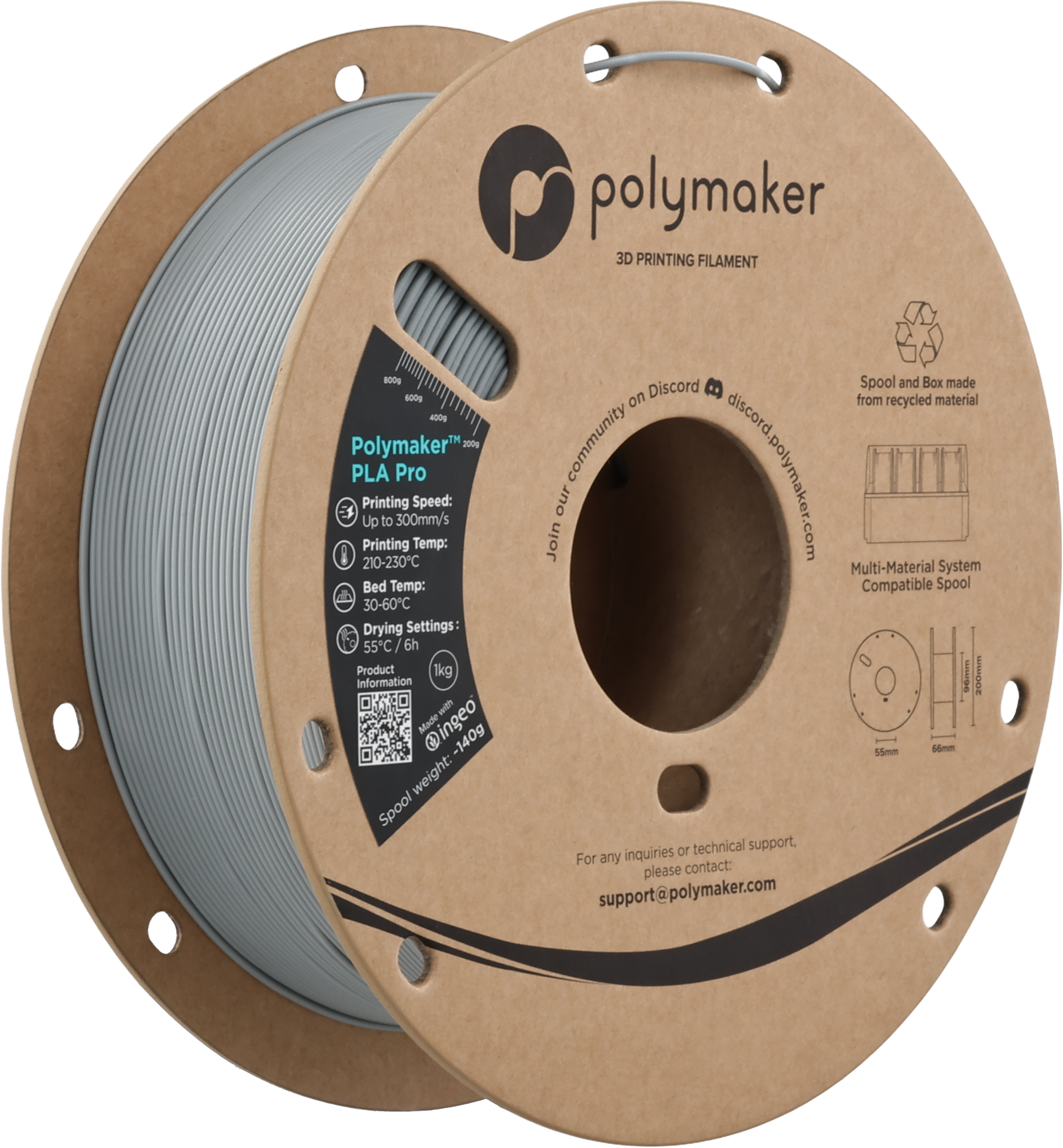 Polymaker PLA Pro Grey, 1,75 mm / 1000 g