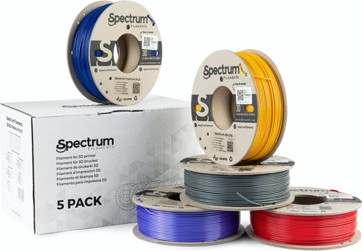 Successful 3D printing relies on choosing the right material properties. Whether your project demands strength, aesthetics, or ease of processing, the Spectrum Material Mix #1 Set of 5 is a great choice. This set includes various filament types in one convenient package, allowing you to test and use different materials without having to purchase multiple full-sized spools. It is ideal for prototyping, functional components, or projects requiring diverse mechanical or optical characteristics. All filaments included in the Spectrum Material Mix #1 set offer consistent quality, reliable dimensional accuracy, and smooth extrusion, ensuring reproducible results on most FDM/FFF 3D printers.
