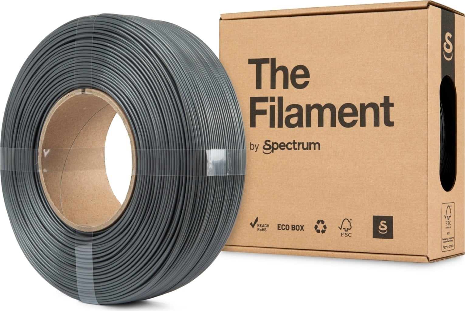 This ReFill is a spool-less PETG filament wound on a cardboard core. It is compatible with reusable Bambu Lab Spools and 3D-printed Spectrum ReFill spools*, and requires no additional adapters.